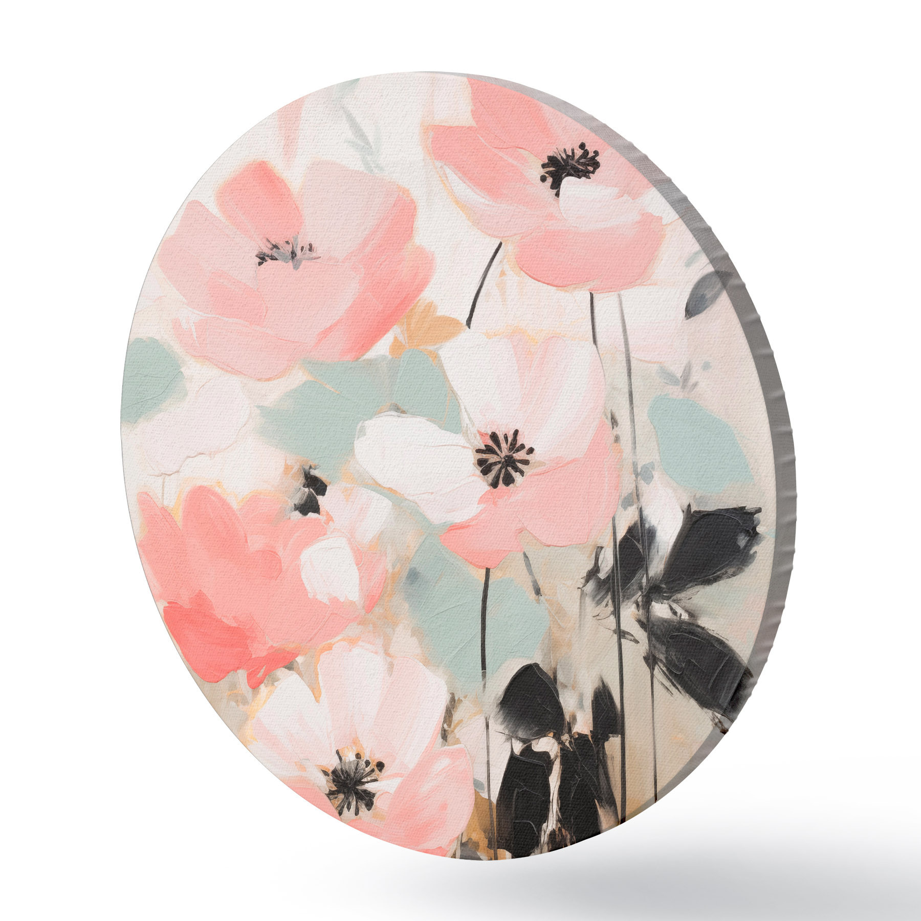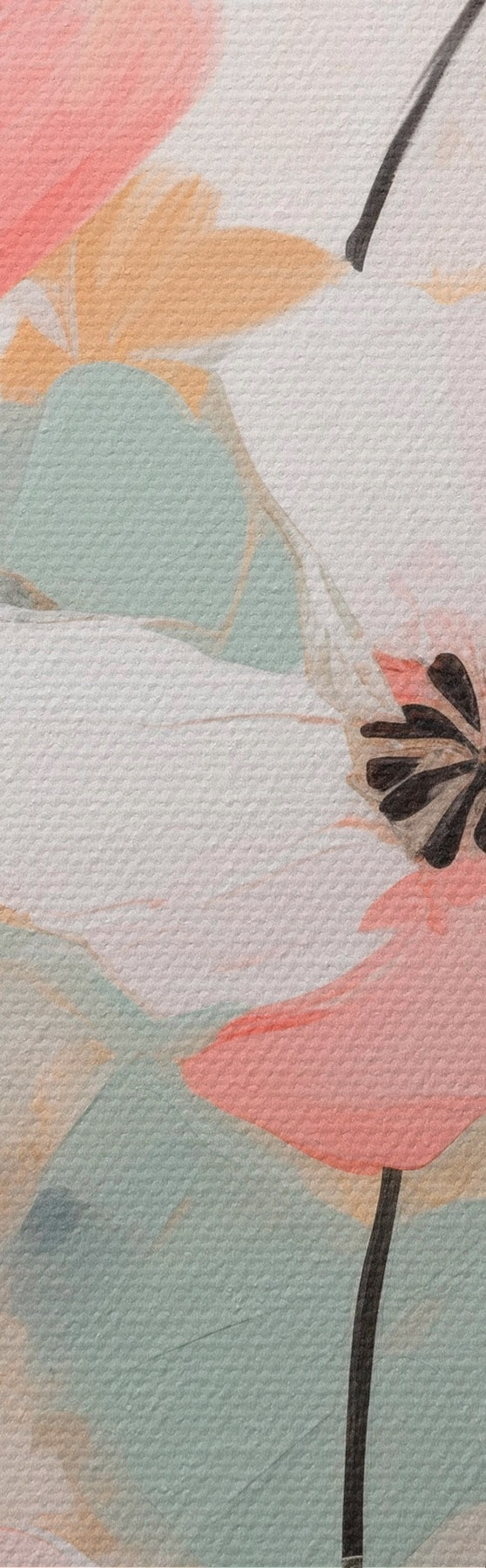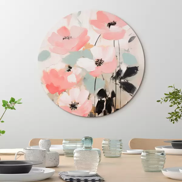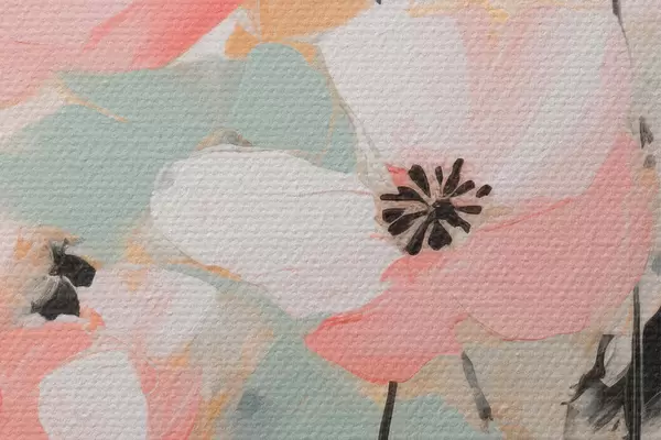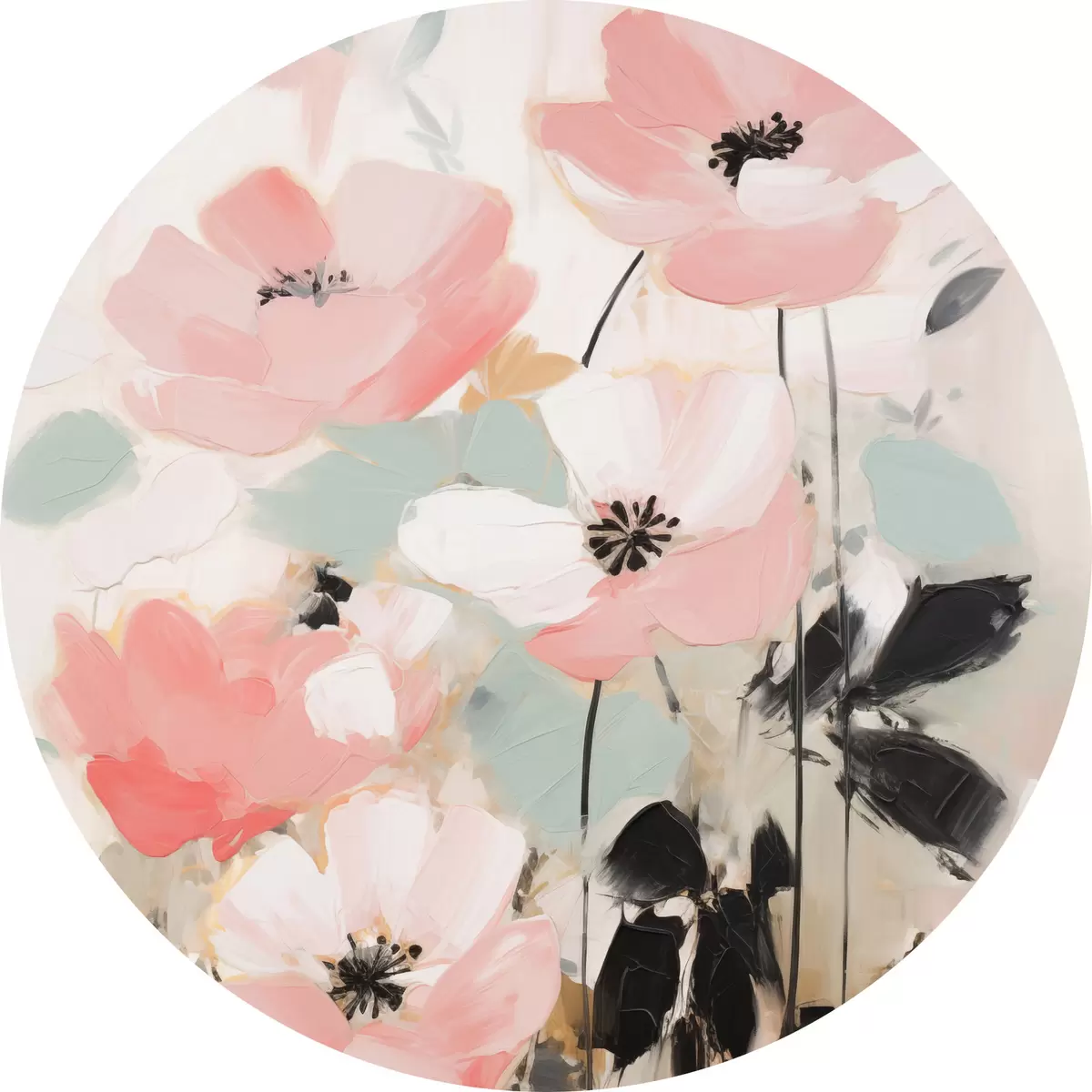 Kép Rózsaszín és fekete virágok levelekkel, lágy pasztell színek, absztrakt virágkompozíció, minimalista művészet Nr r46688