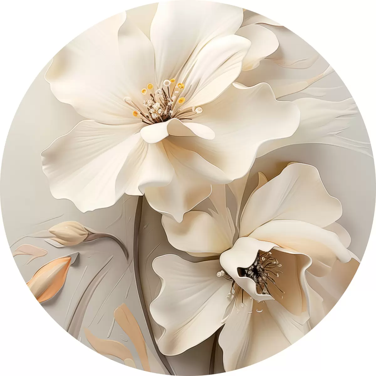 Kép Fehér virágok, lágy árnyékú szirmok, világos bézs háttér, elegáns kompozíció, minimalista stílus Nr r46700