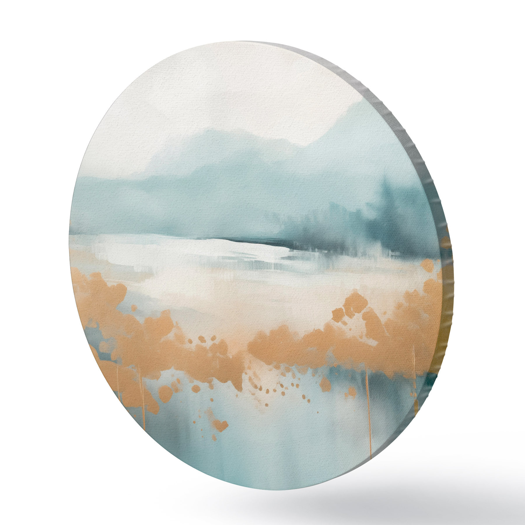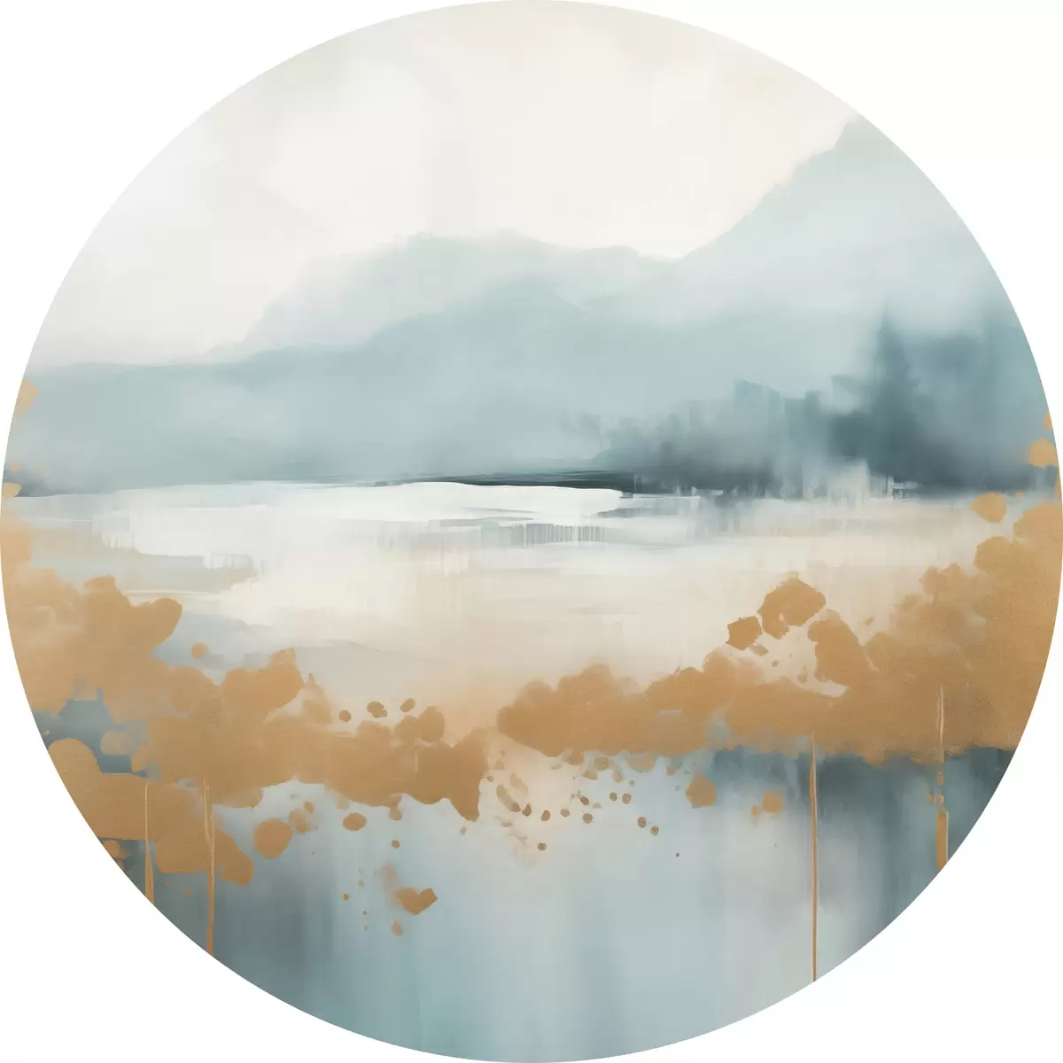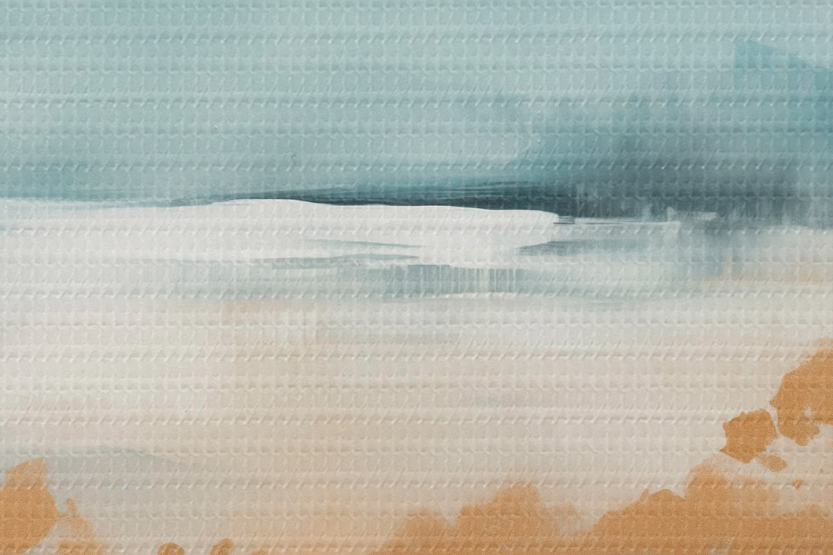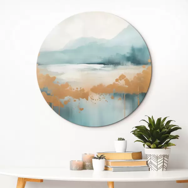 Kép Absztrakt táj hegyekkel és tóval, türkizkék és texturált sárga színekkel, lágy ecsetvonásokkal, minimalista műalkotás Nr r46703
