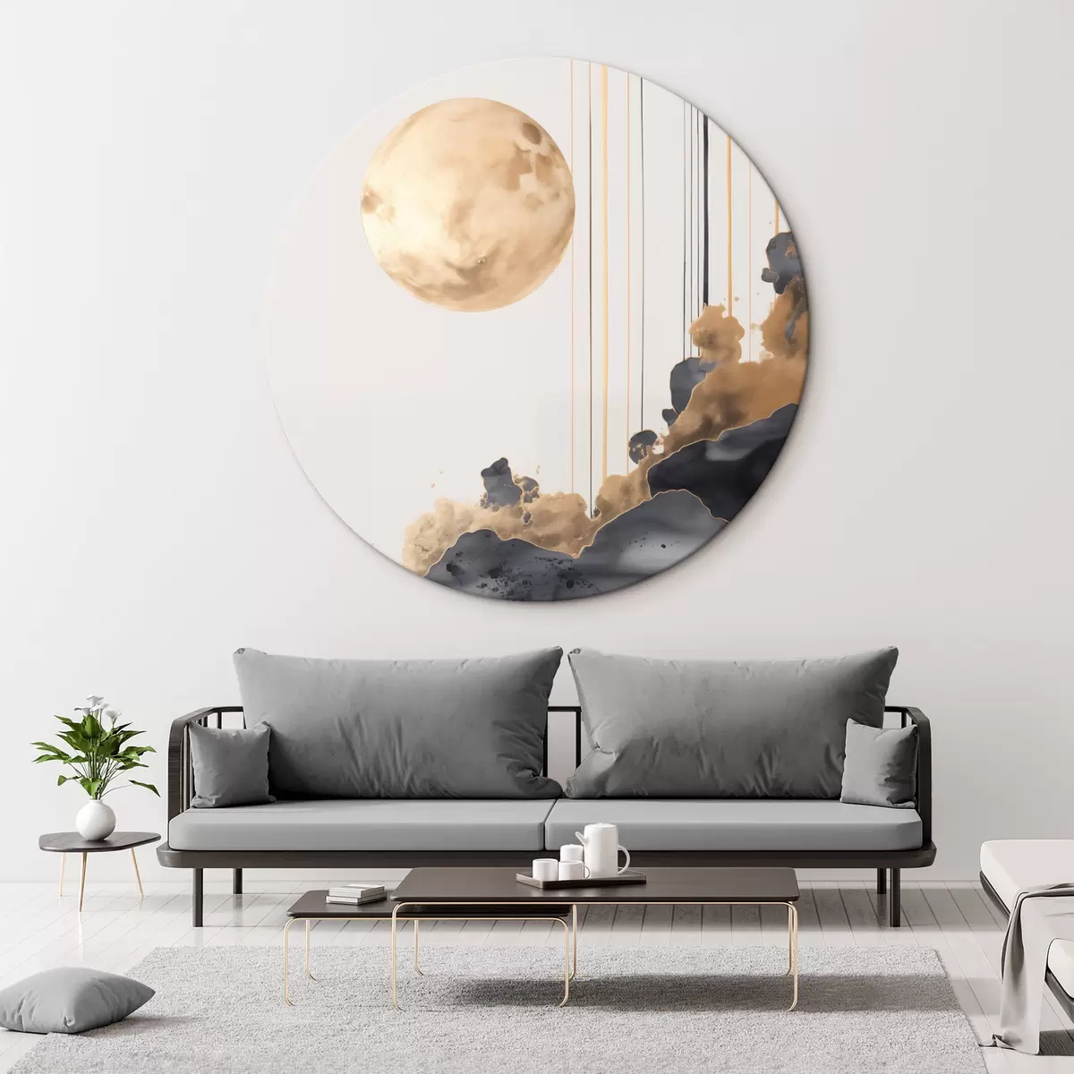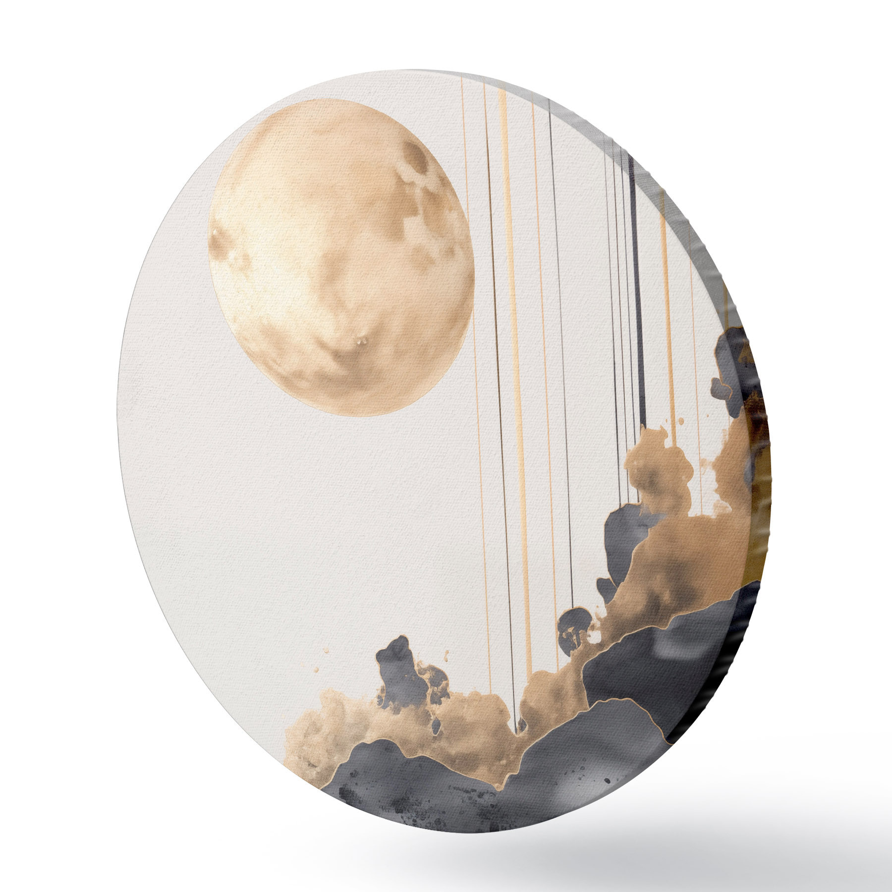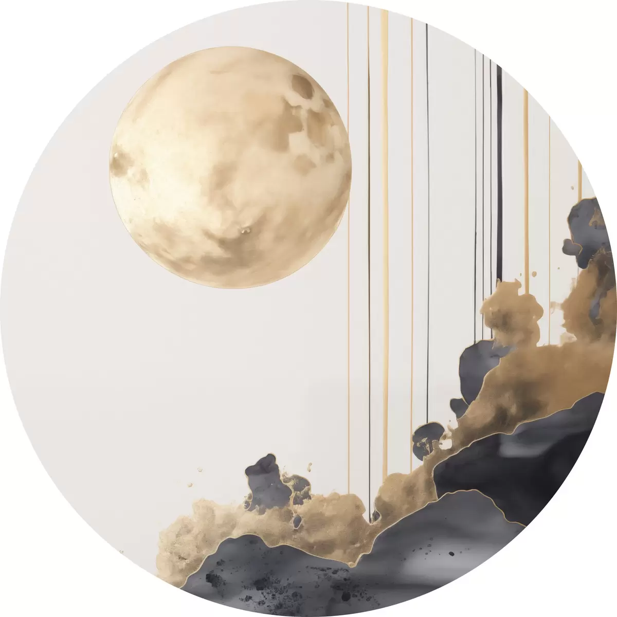 Kép Telihold fekete és texturált sárga felhőkkel, függőleges vonalakkal, absztrakt stílusban, minimalista és modern Nr r46707