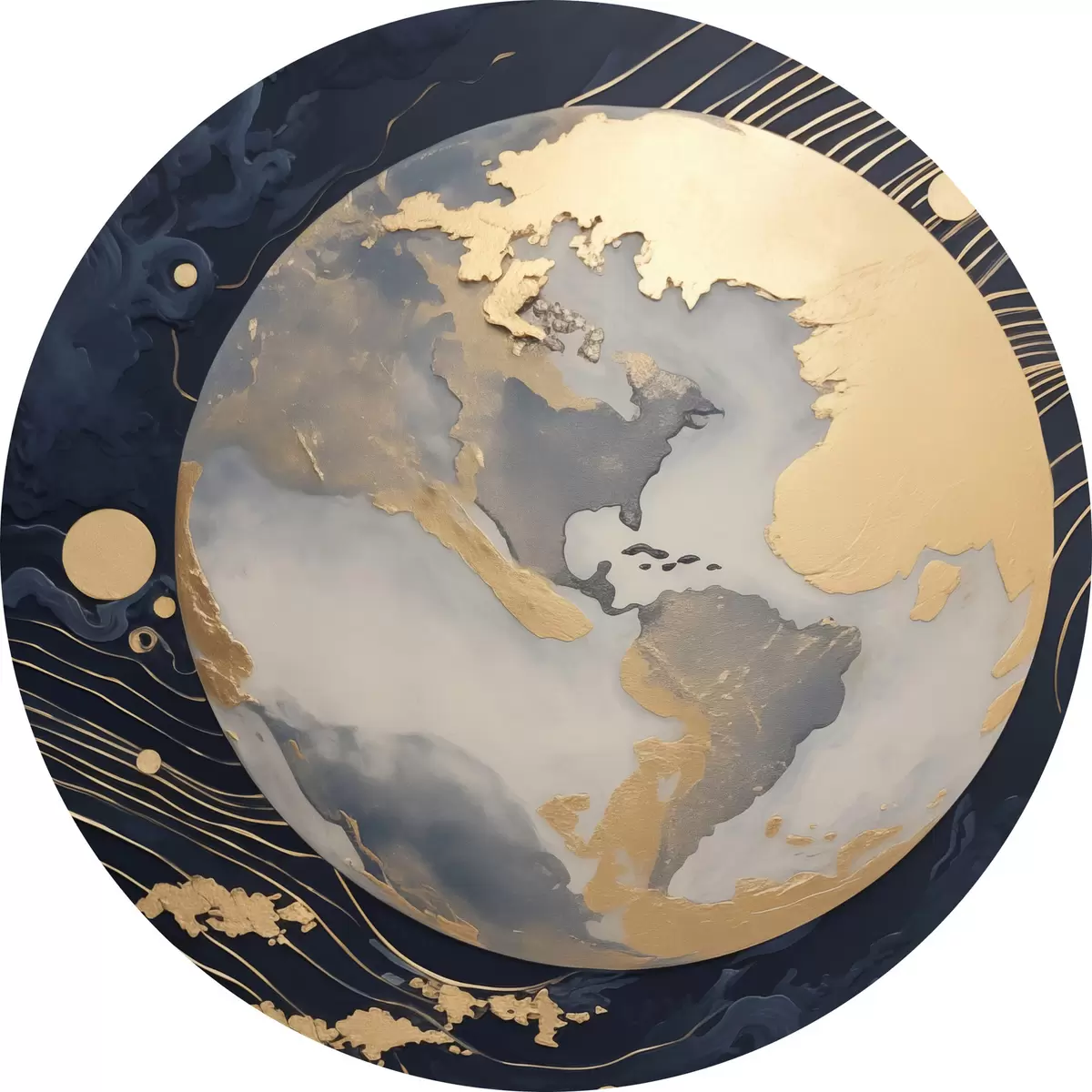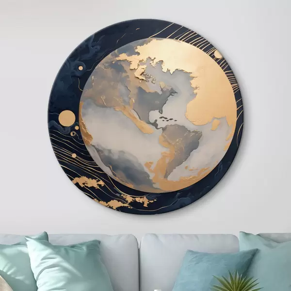 Kép Texturált dekoratív bolygó sárga vonalakkal a háttérben, sárga pontokkal a háttérben, sötét háttérrel Nr r46708