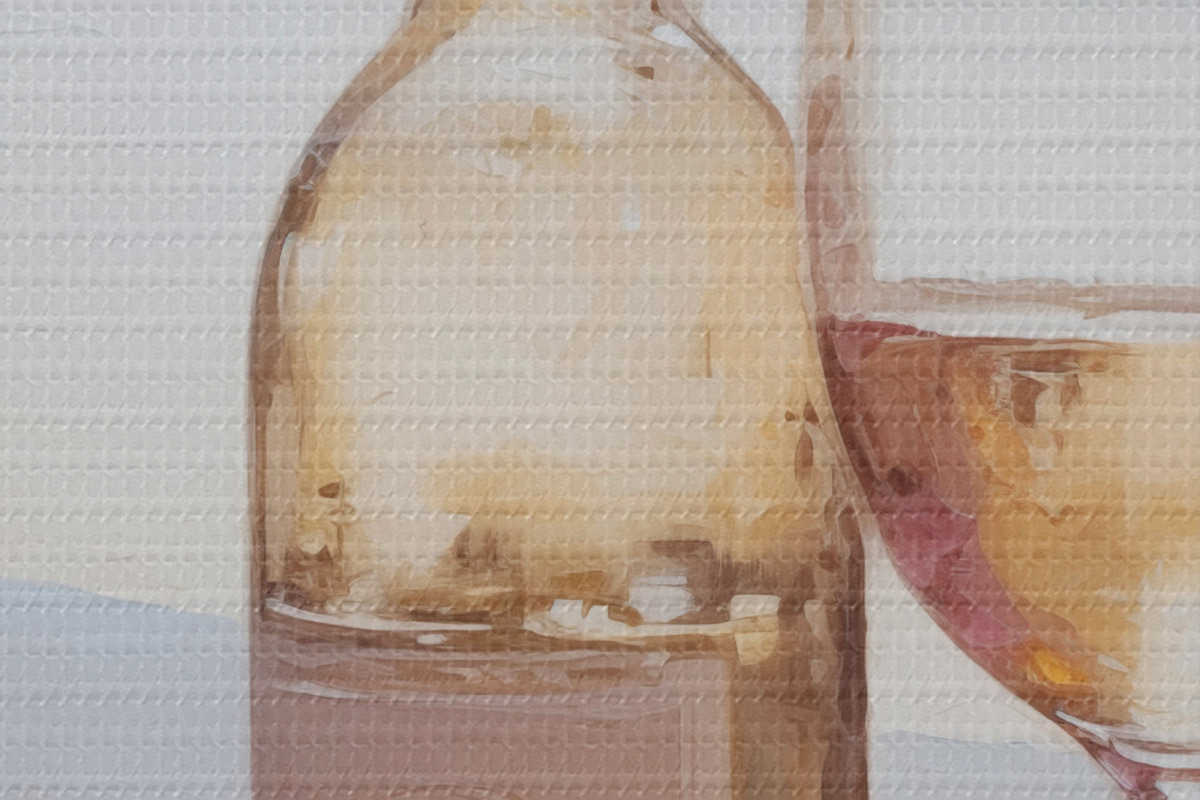 Kép Egy üveg és egy pohár bor, valamint egy szemüveges kiskutya, festmény utánzat Nr r46721