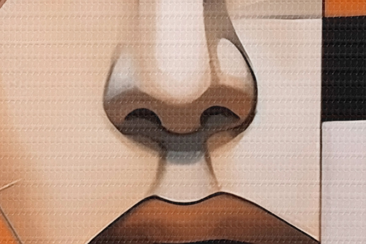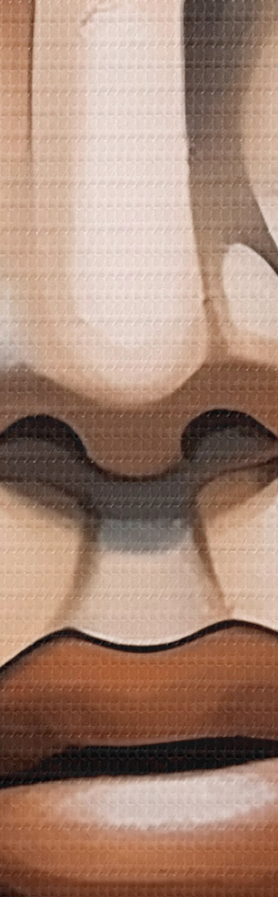 Ahhoz, hogy a vásznat a feszítőrúdra feszítsük anélkül, hogy a kép megsérülne, tükrözött képet használunk.