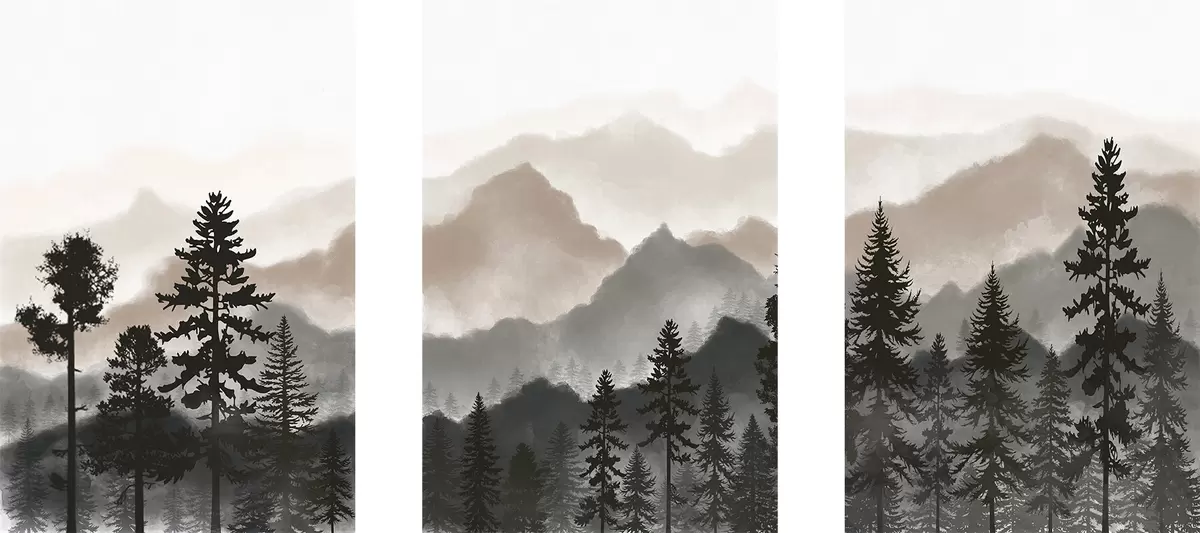 Poster Nyugodt hegyvidéki táj fákkal Nr d00244v1
