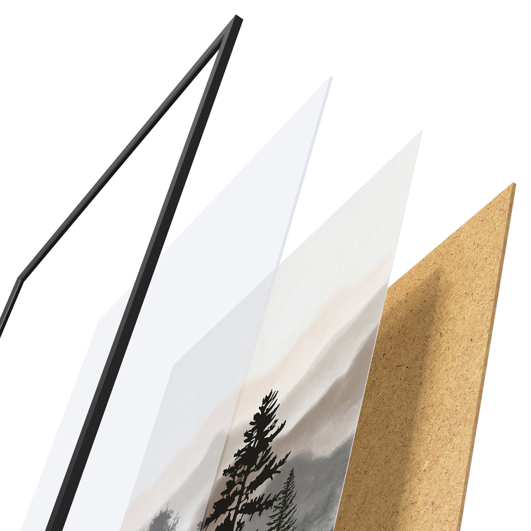 A poszter keretből, plexiből, nyomtatott képből és forgácslap hátlapból áll. A poszter a hátoldalon található rögzítőknek köszönhetően azonnal felakasztható a falra.