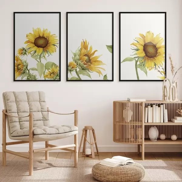Plakát a sziklán Színes akvarell napraforgók d00334
