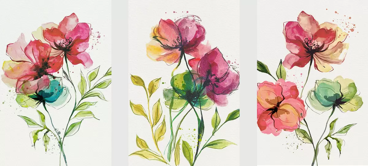 Poster Finom akvarell virágok festékfoltokkal Nr d00340