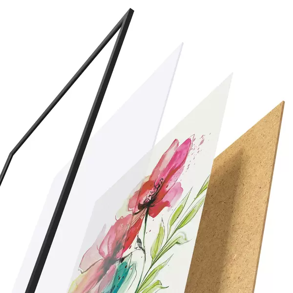 A poszter keretből, plexiből, nyomtatott képből és forgácslap hátlapból áll. A poszter a hátoldalon található rögzítőknek köszönhetően azonnal felakasztható a falra.