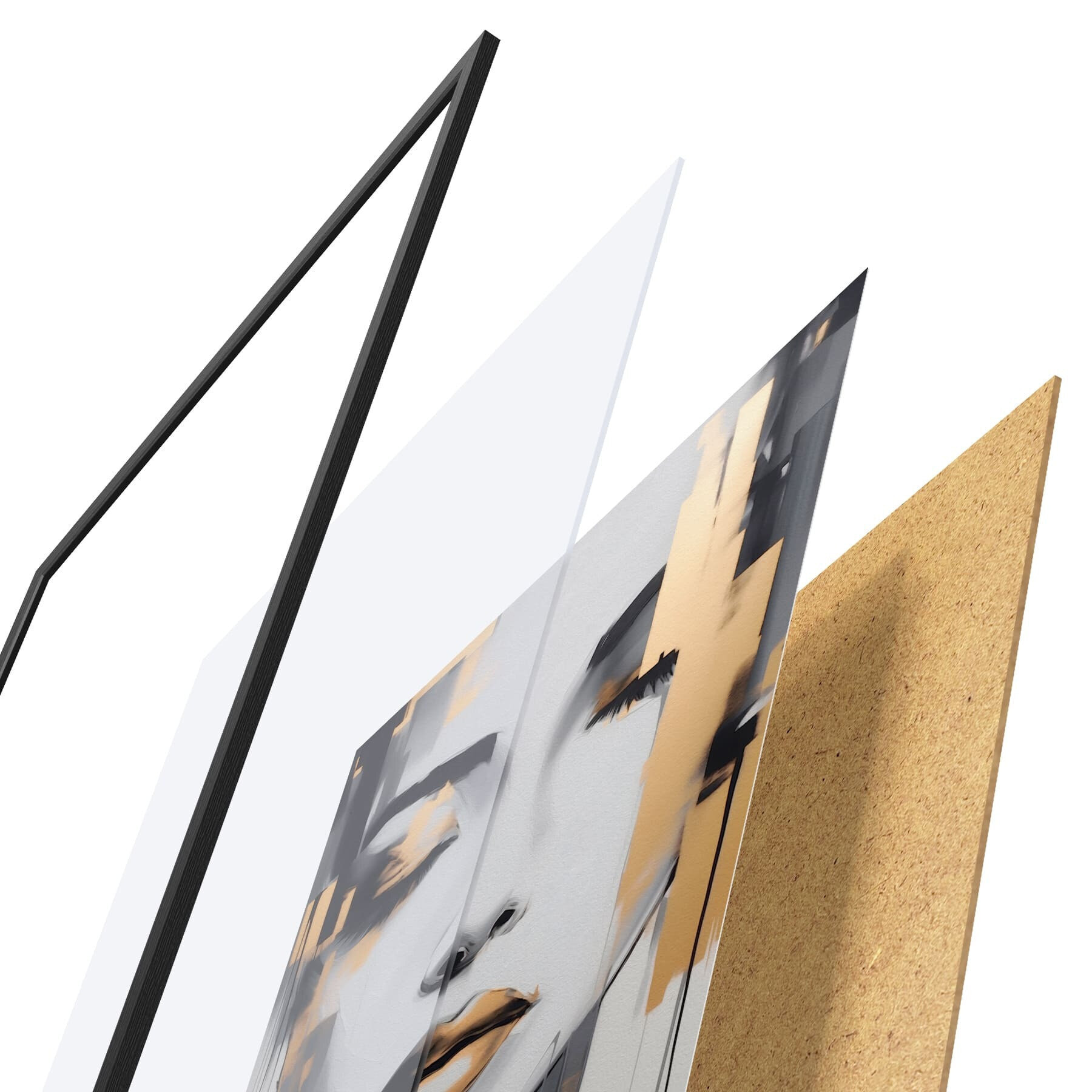 A poszter keretből, plexiből, nyomtatott képből és forgácslap hátlapból áll. A poszter a hátoldalon található rögzítőknek köszönhetően azonnal felakasztható a falra.