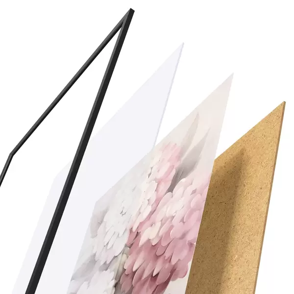 A poszter keretből, plexiből, nyomtatott képből és forgácslap hátlapból áll. A poszter a hátoldalon található rögzítőknek köszönhetően azonnal felakasztható a falra.