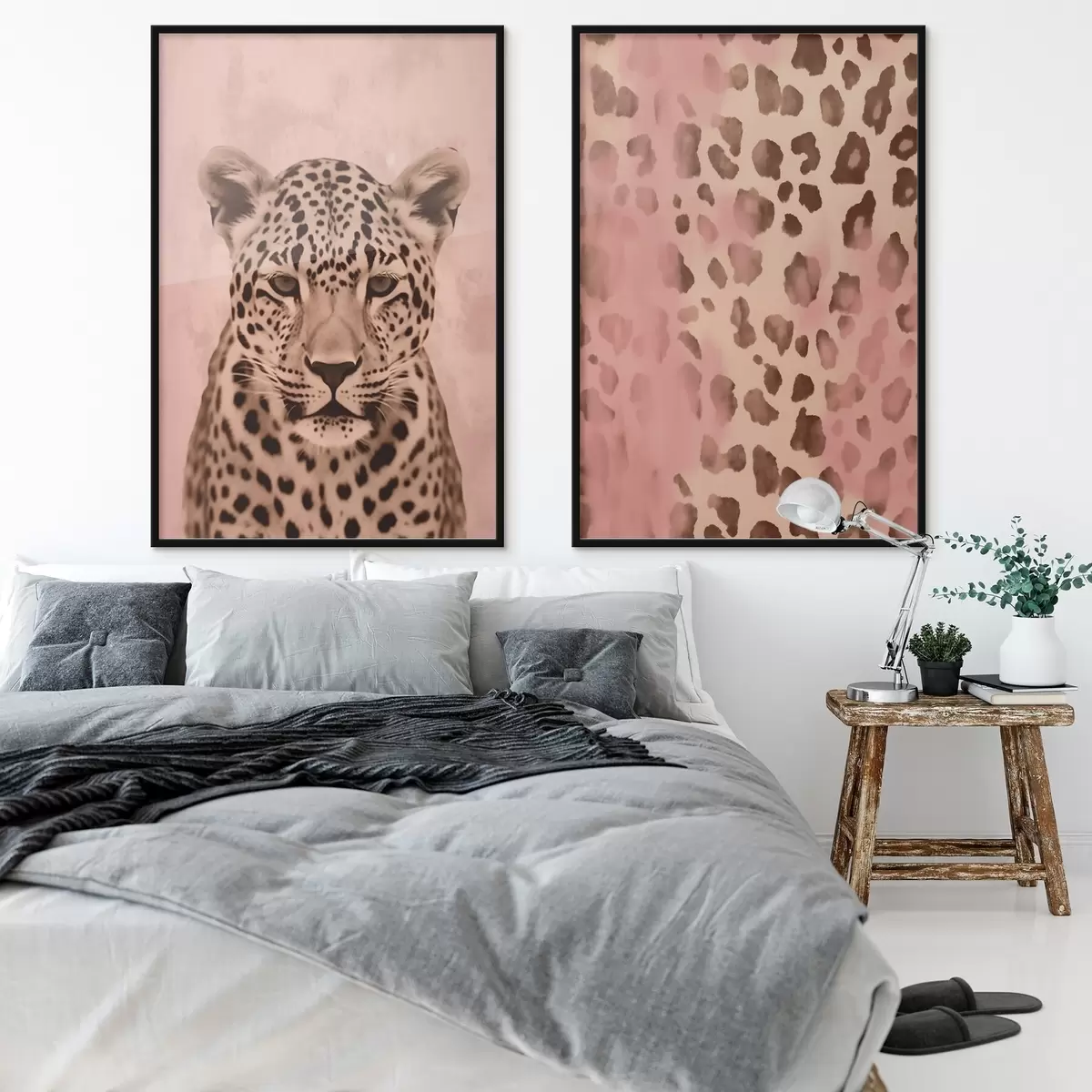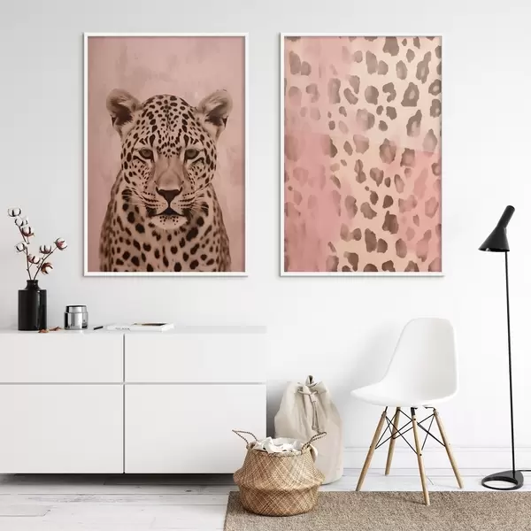 Poster Portré egy gepárd, Absztrakt minta leopárd mintával rózsaszín háttérrel Nr d00402