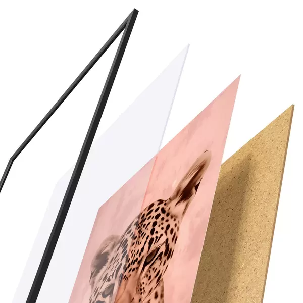 A poszter keretből, plexiből, nyomtatott képből és forgácslap hátlapból áll. A poszter a hátoldalon található rögzítőknek köszönhetően azonnal felakasztható a falra.