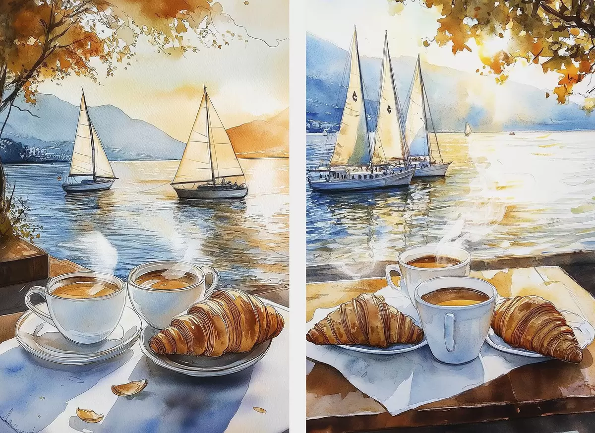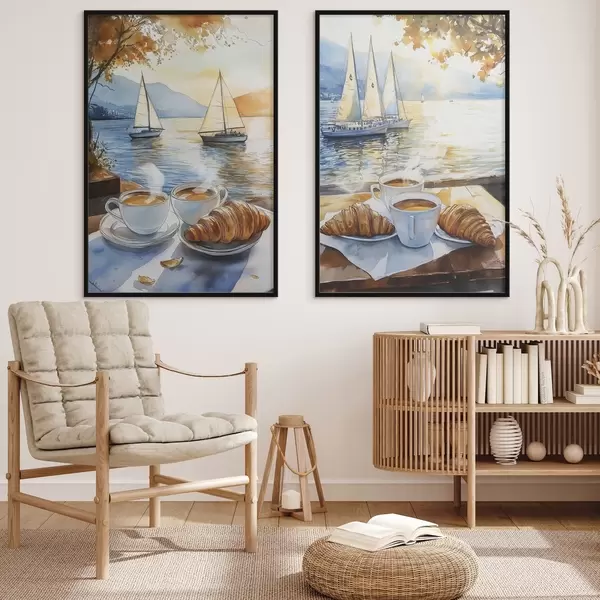 Poster Naplemente a tavon kávéval, vitorlásokkal, természet, utazás Nr d00407