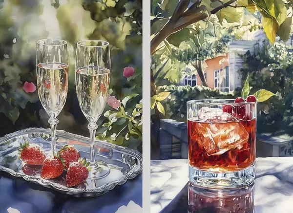 Plakát a sziklán Finom koktélok bogyós gyümölcsökkel, akvarell stílus, esztétika, nyári természet d00415