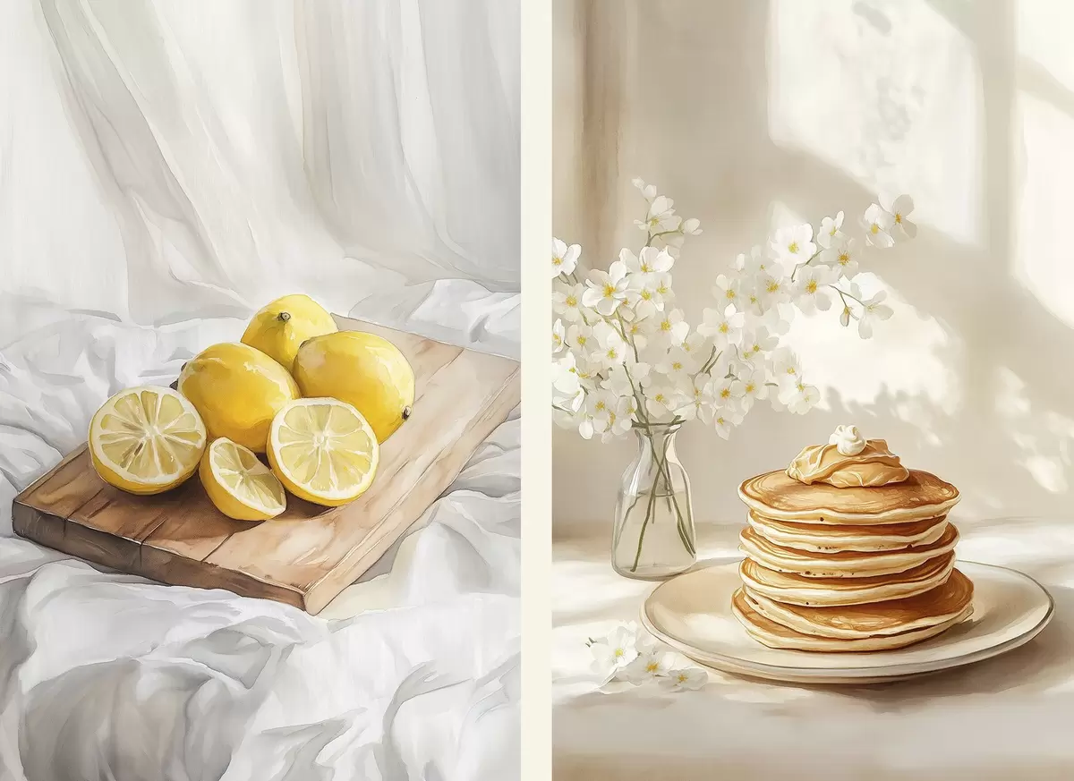 Poster Palacsinta mogyoróvajjal, citrommal a fatáblán, akvarell stílusban Nr d00416