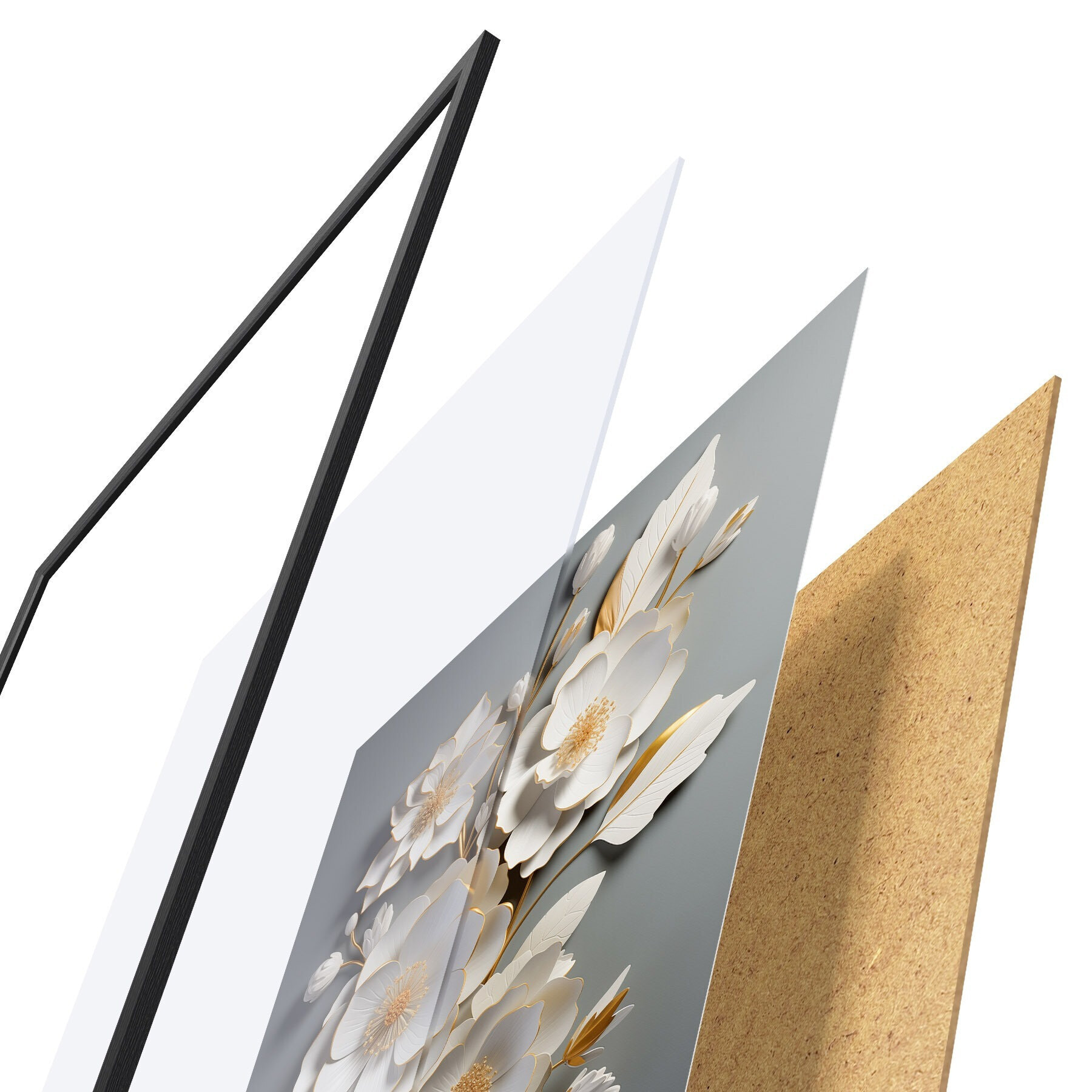 A poszter keretből, plexiből, nyomtatott képből és forgácslap hátlapból áll. A poszter a hátoldalon található rögzítőknek köszönhetően azonnal felakasztható a falra.