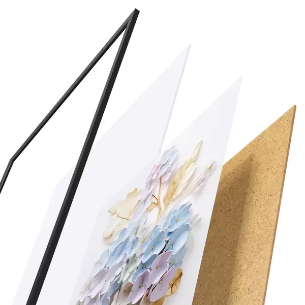 A poszter keretből, plexiből, nyomtatott képből és forgácslap hátlapból áll. A poszter a hátoldalon található rögzítőknek köszönhetően azonnal felakasztható a falra.