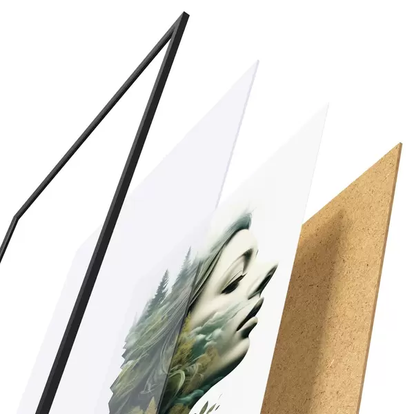 A poszter keretből, plexiből, nyomtatott képből és forgácslap hátlapból áll. A poszter a hátoldalon található rögzítőknek köszönhetően azonnal felakasztható a falra.