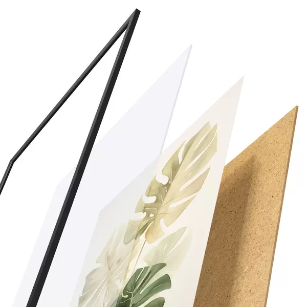 A poszter keretből, plexiből, nyomtatott képből és forgácslap hátlapból áll. A poszter a hátoldalon található rögzítőknek köszönhetően azonnal felakasztható a falra.