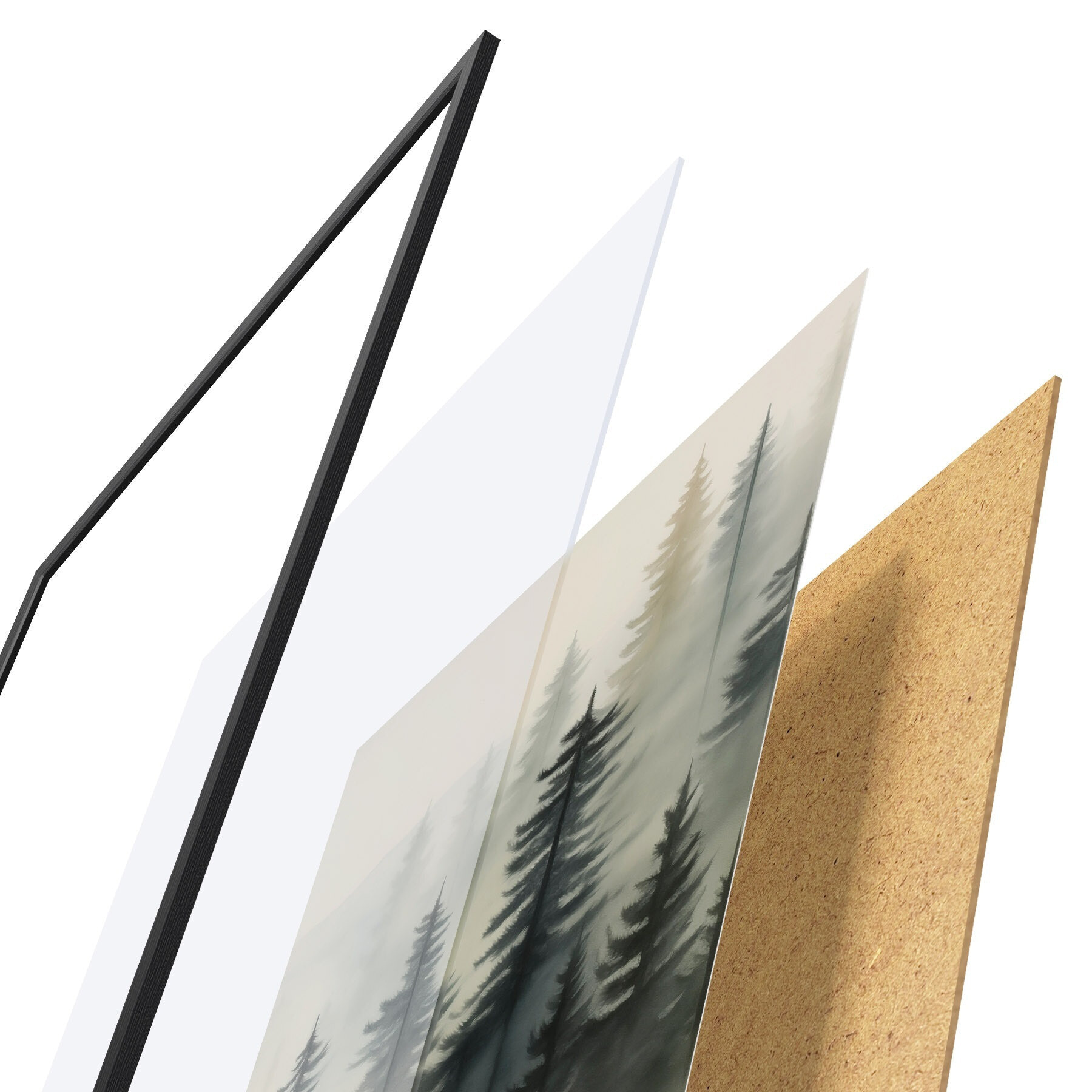 A poszter keretből, plexiből, nyomtatott képből és forgácslap hátlapból áll. A poszter a hátoldalon található rögzítőknek köszönhetően azonnal felakasztható a falra.