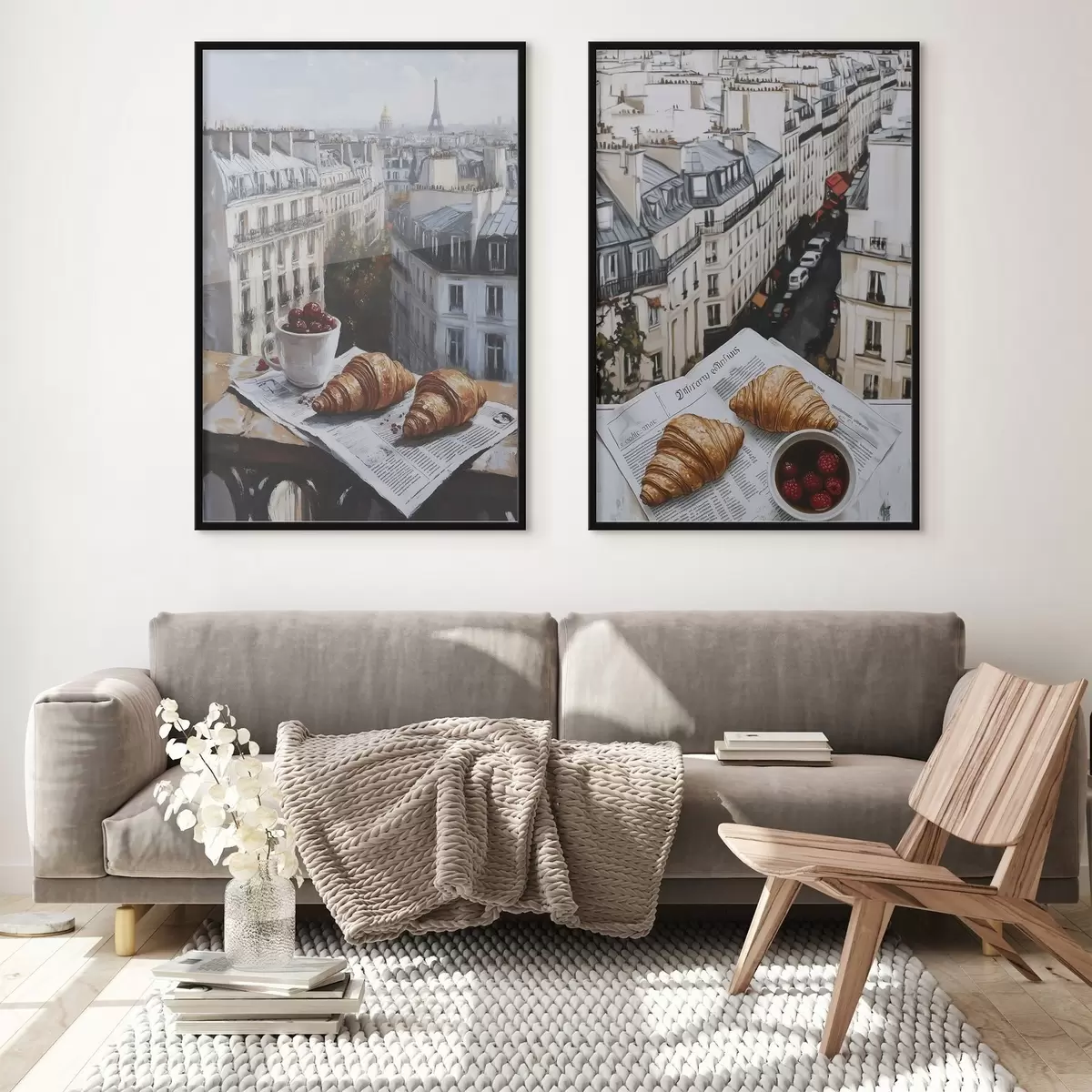 Poster Városnézés egy párizsi erkélyen, Eiffel-torony, eper, kávé, napló Nr d00445