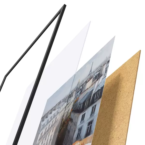 A poszter keretből, plexiből, nyomtatott képből és forgácslap hátlapból áll. A poszter a hátoldalon található rögzítőknek köszönhetően azonnal felakasztható a falra.