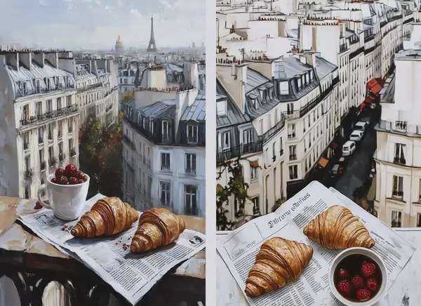 Plakát a sziklán Városnézés egy párizsi erkélyen, Eiffel-torony, eper, kávé, napló d00445