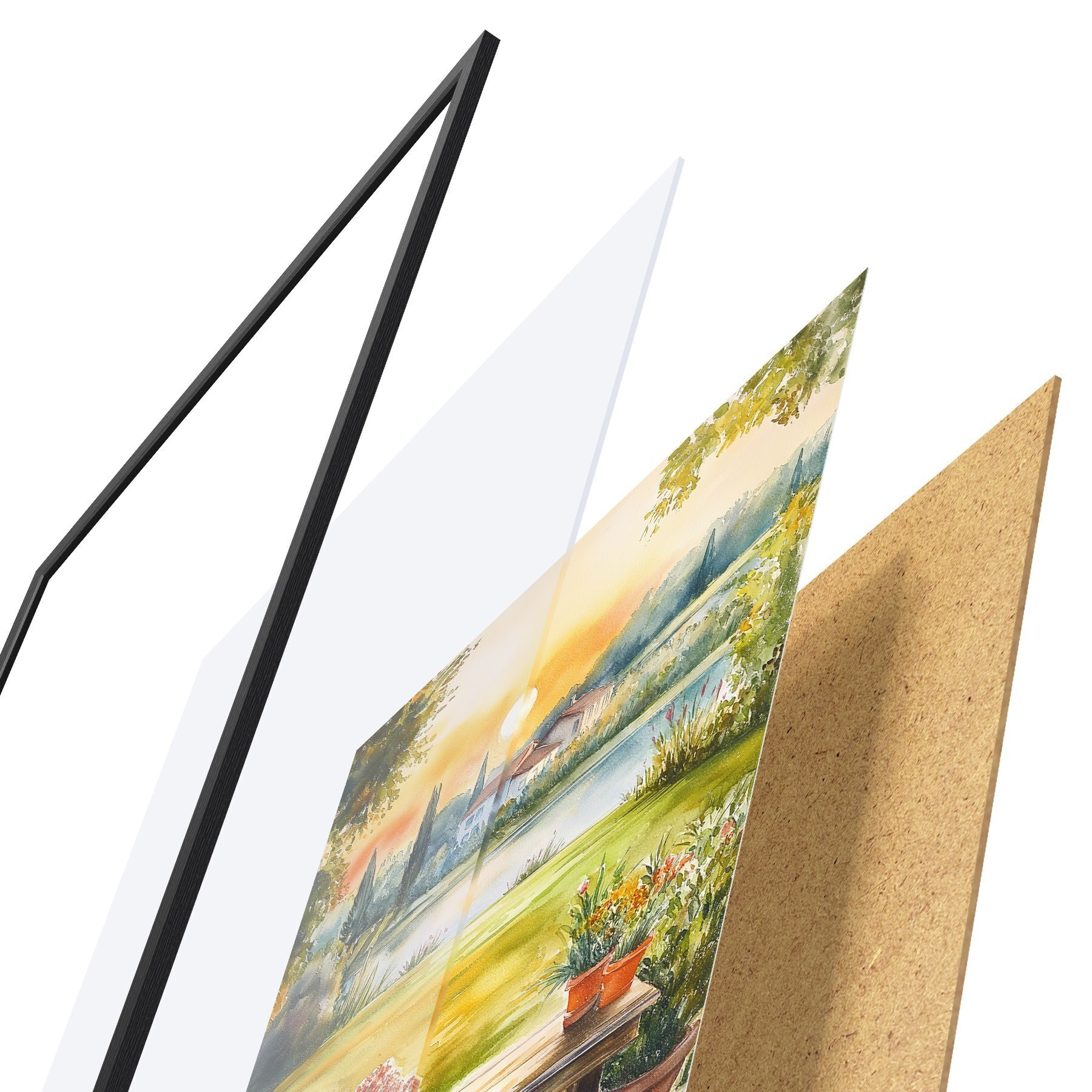 A poszter keretből, plexiből, nyomtatott képből és forgácslap hátlapból áll. A poszter a hátoldalon található rögzítőknek köszönhetően azonnal felakasztható a falra.