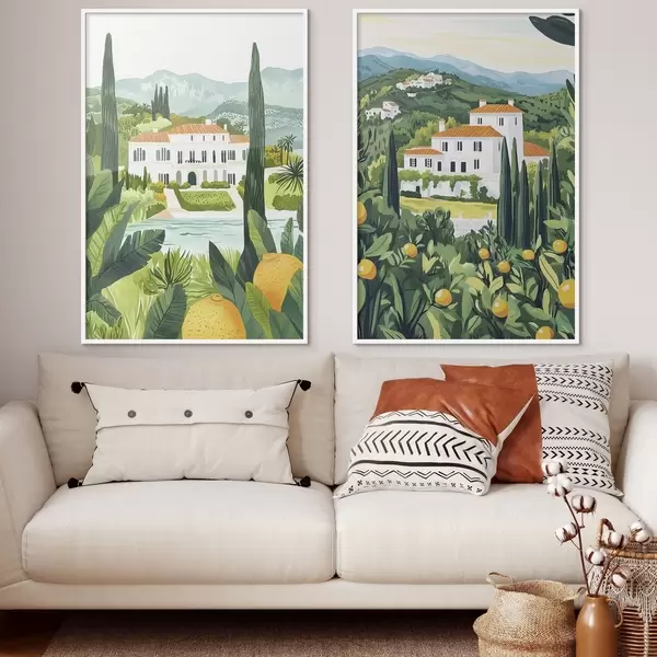 Poster Mediterrán tájak fákkal és házakkal, tengerpart, Spanyolország Nr d00450