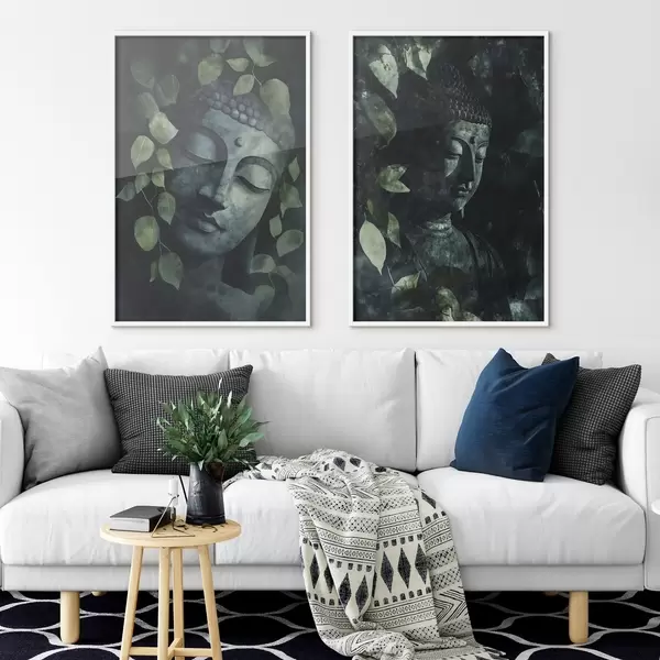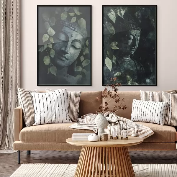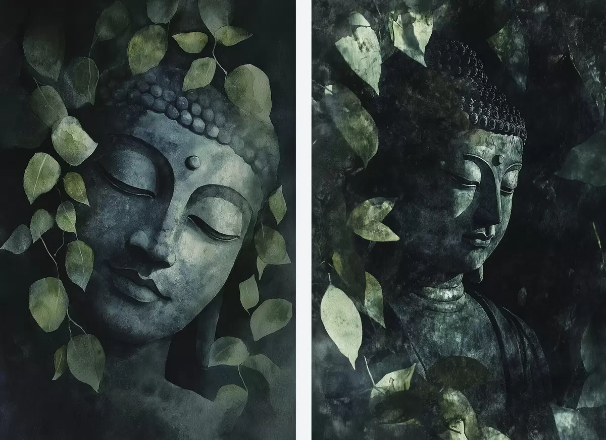 Poster Zöld Buddha trópusi levelekben, akvarell stílusban Nr d00451