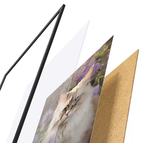 A poszter keretből, plexiből, nyomtatott képből és forgácslap hátlapból áll. A poszter a hátoldalon található rögzítőknek köszönhetően azonnal felakasztható a falra.