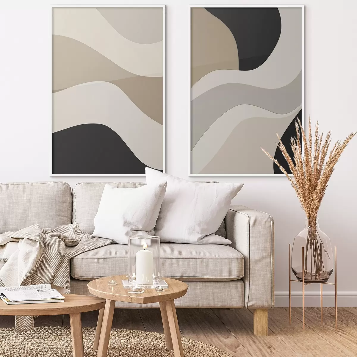 Poster Absztrakt hullámok bézs és fekete tónusokban Nr d00460