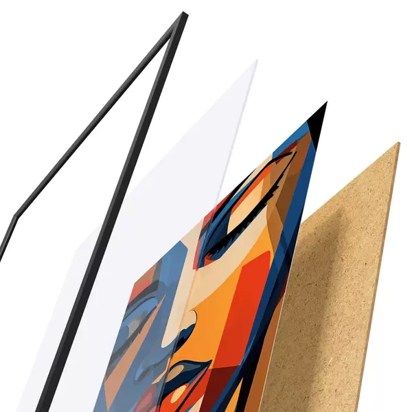 A poszter keretből, plexiből, nyomtatott képből és forgácslap hátlapból áll. A poszter a hátoldalon található rögzítőknek köszönhetően azonnal felakasztható a falra.