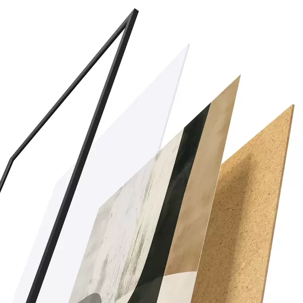 A poszter keretből, plexiből, nyomtatott képből és forgácslap hátlapból áll. A poszter a hátoldalon található rögzítőknek köszönhetően azonnal felakasztható a falra.