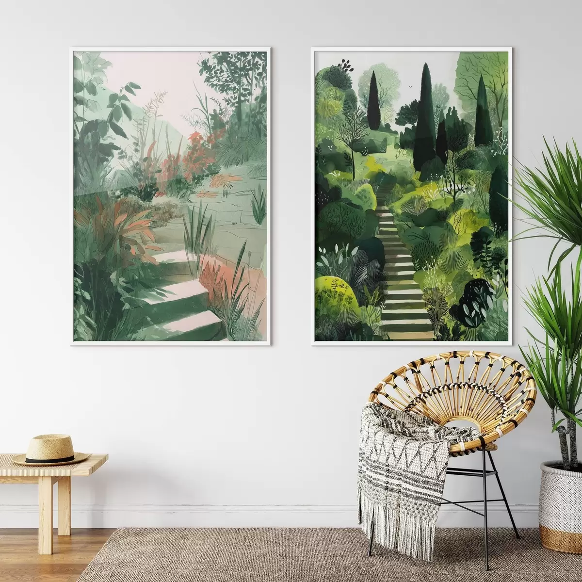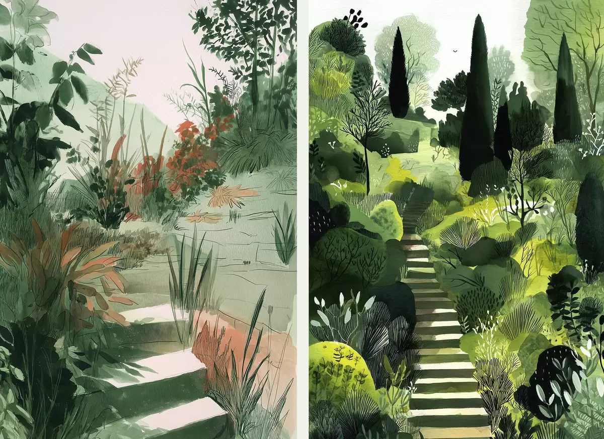 Poster Zöld keleti kert bokrokkal és fákkal Nr d00478