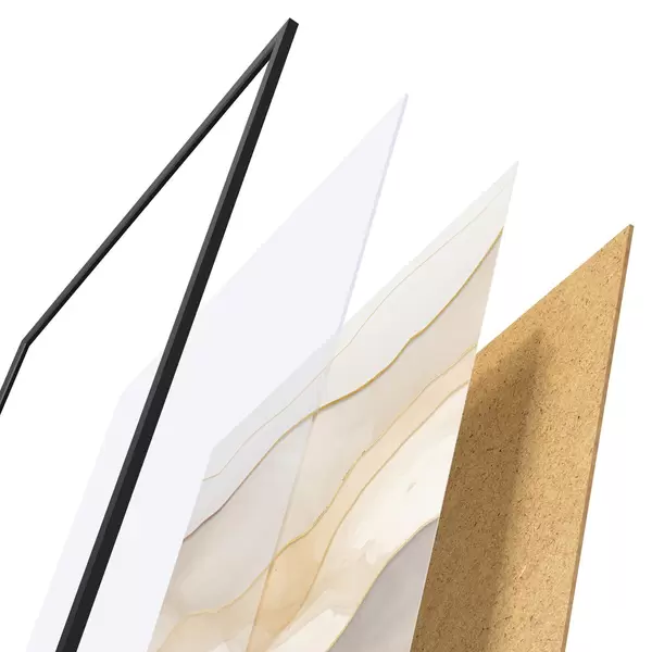 A poszter keretből, plexiből, nyomtatott képből és forgácslap hátlapból áll. A poszter a hátoldalon található rögzítőknek köszönhetően azonnal felakasztható a falra.