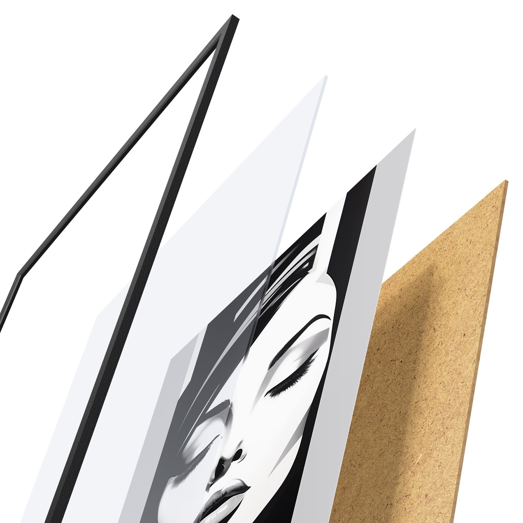 A poszter keretből, plexiből, nyomtatott képből és forgácslap hátlapból áll. A poszter a hátoldalon található rögzítőknek köszönhetően azonnal felakasztható a falra.