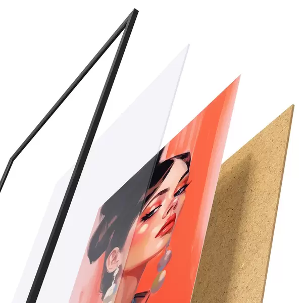 A poszter keretből, plexiből, nyomtatott képből és forgácslap hátlapból áll. A poszter a hátoldalon található rögzítőknek köszönhetően azonnal felakasztható a falra.