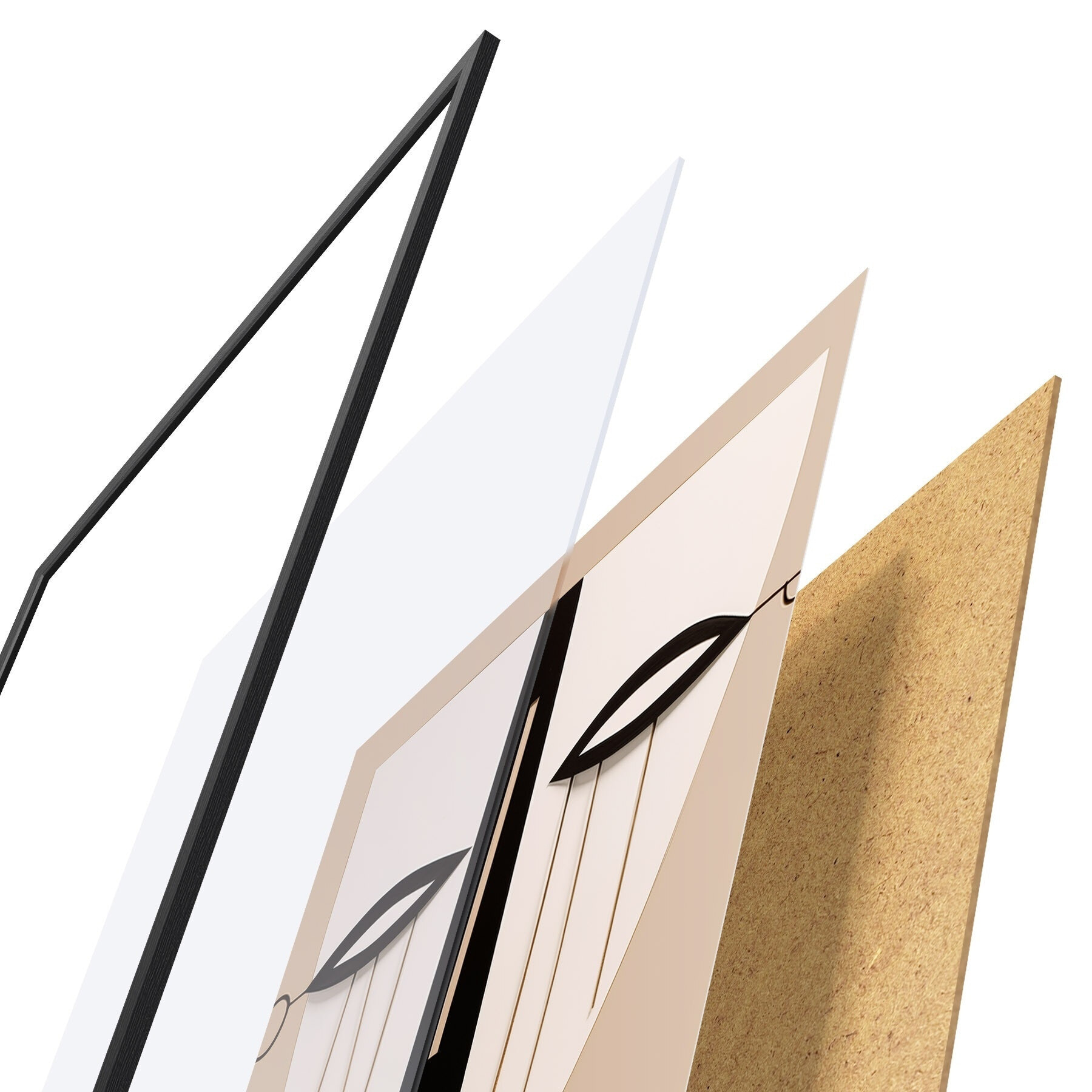 A poszter keretből, plexiből, nyomtatott képből és forgácslap hátlapból áll. A poszter a hátoldalon található rögzítőknek köszönhetően azonnal felakasztható a falra.