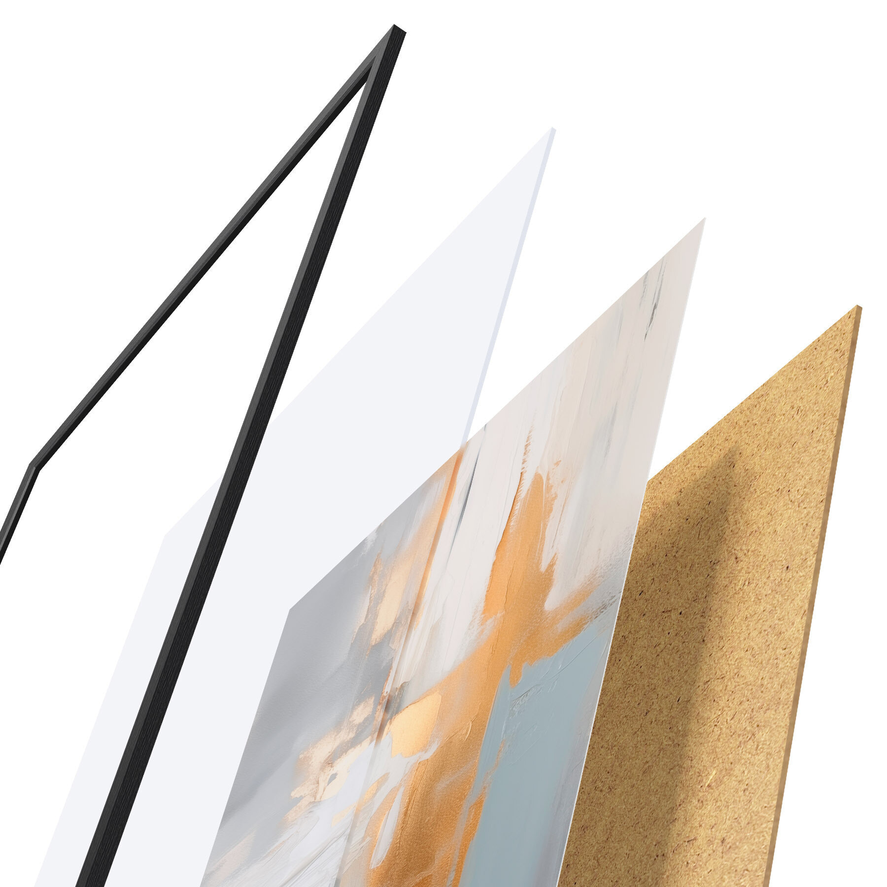 A poszter keretből, plexiből, nyomtatott képből és forgácslap hátlapból áll. A poszter a hátoldalon található rögzítőknek köszönhetően azonnal felakasztható a falra.
