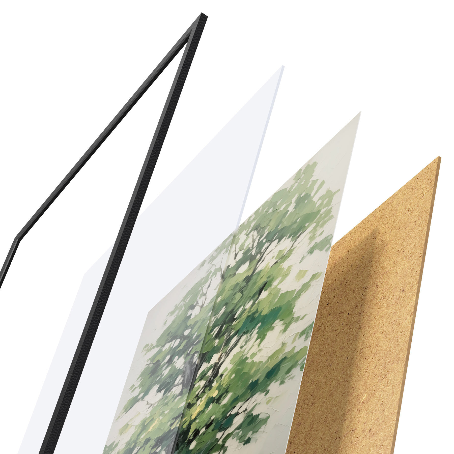 A poszter keretből, plexiből, nyomtatott képből és forgácslap hátlapból áll. A poszter a hátoldalon található rögzítőknek köszönhetően azonnal felakasztható a falra.