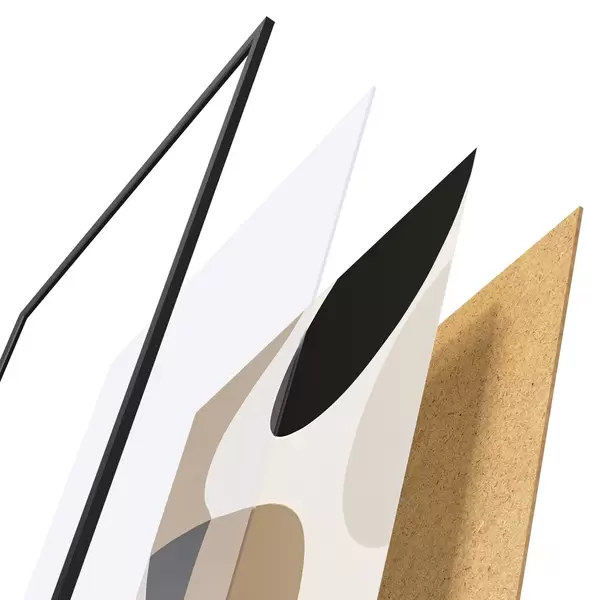 A poszter keretből, plexiből, nyomtatott képből és forgácslap hátlapból áll. A poszter a hátoldalon található rögzítőknek köszönhetően azonnal felakasztható a falra.