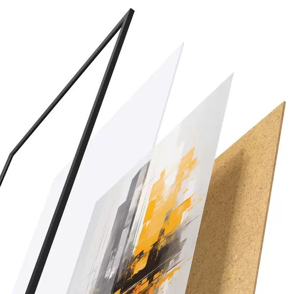 A poszter keretből, plexiből, nyomtatott képből és forgácslap hátlapból áll. A poszter a hátoldalon található rögzítőknek köszönhetően azonnal felakasztható a falra.