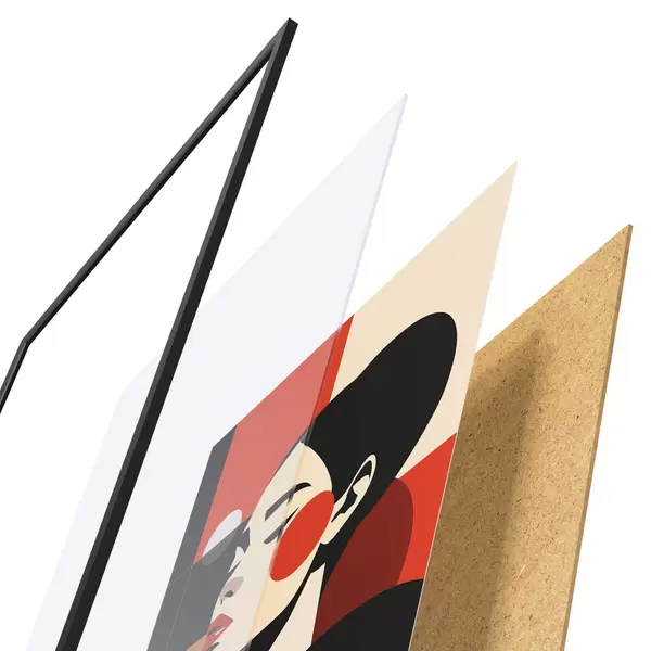 A poszter keretből, plexiből, nyomtatott képből és forgácslap hátlapból áll. A poszter a hátoldalon található rögzítőknek köszönhetően azonnal felakasztható a falra.
