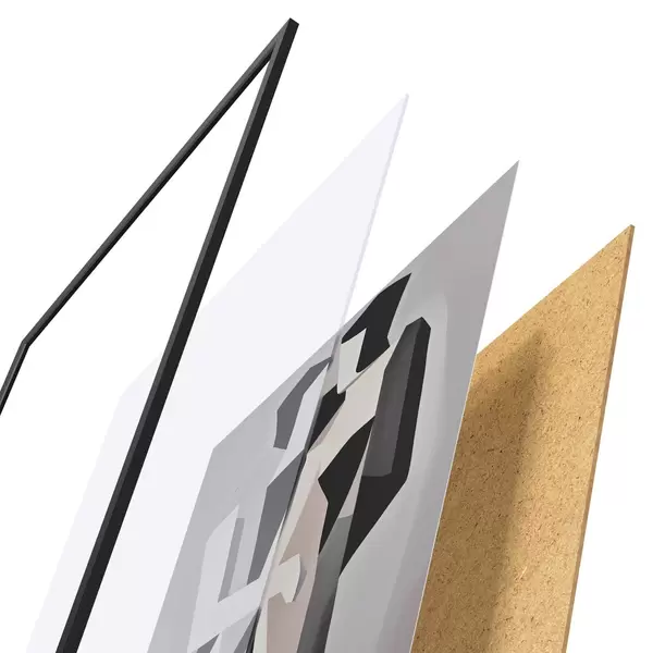 A poszter keretből, plexiből, nyomtatott képből és forgácslap hátlapból áll. A poszter a hátoldalon található rögzítőknek köszönhetően azonnal felakasztható a falra.