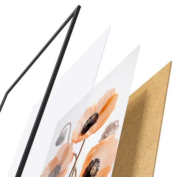 A poszter keretből, plexiből, nyomtatott képből és forgácslap hátlapból áll. A poszter a hátoldalon található rögzítőknek köszönhetően azonnal felakasztható a falra.