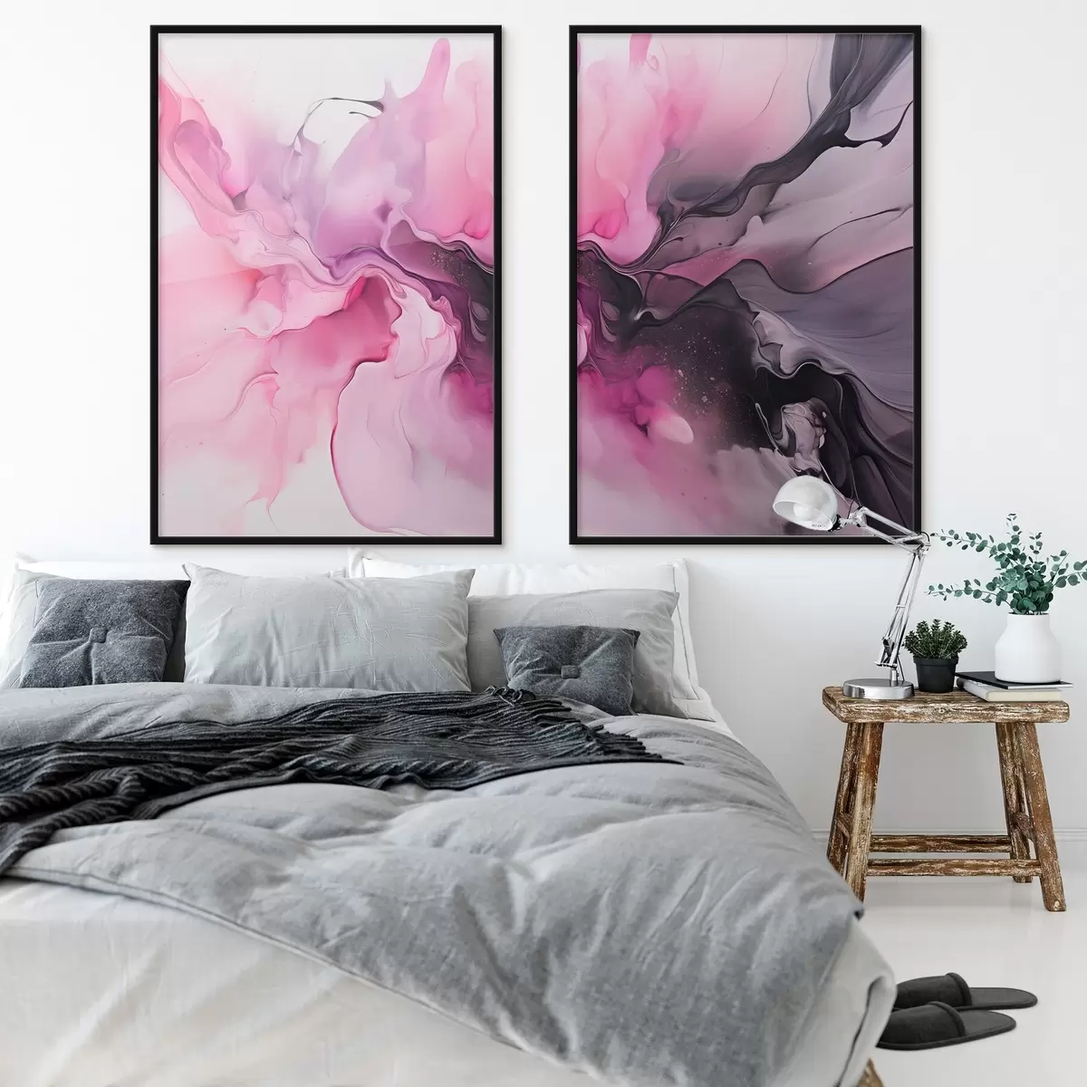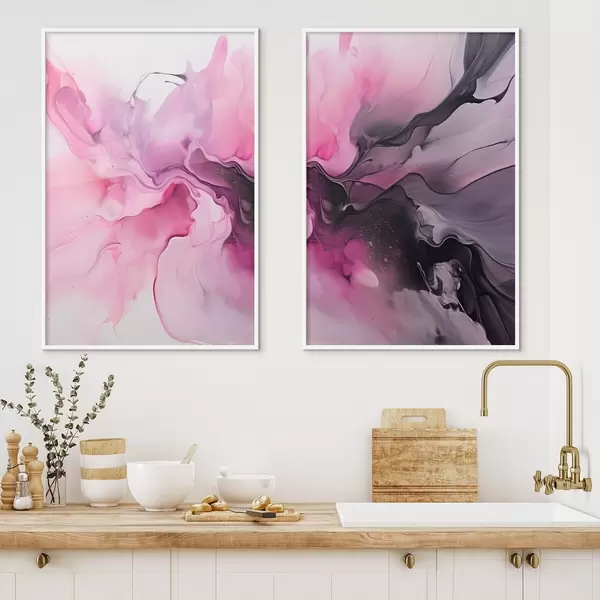Poster Absztrakt örvények rózsaszín, lila és fekete keverednek össze egy folyékony, szerves kompozícióban, ami a mozgás érzetét kelti Nr d00532