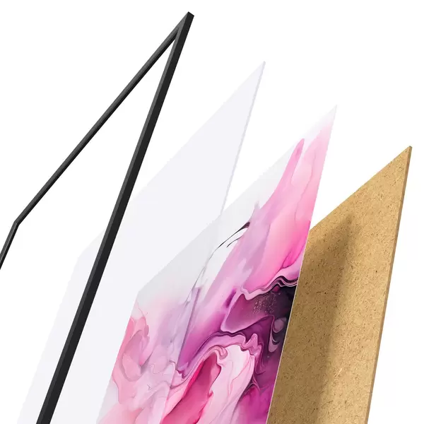 A poszter keretből, plexiből, nyomtatott képből és forgácslap hátlapból áll. A poszter a hátoldalon található rögzítőknek köszönhetően azonnal felakasztható a falra.