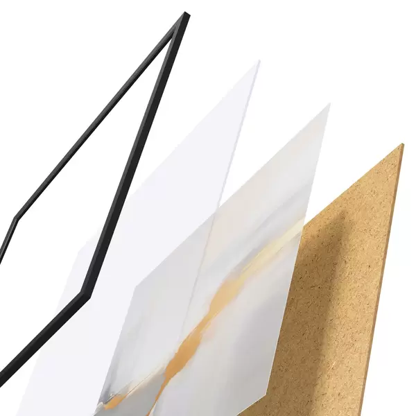 A poszter keretből, plexiből, nyomtatott képből és forgácslap hátlapból áll. A poszter a hátoldalon található rögzítőknek köszönhetően azonnal felakasztható a falra.