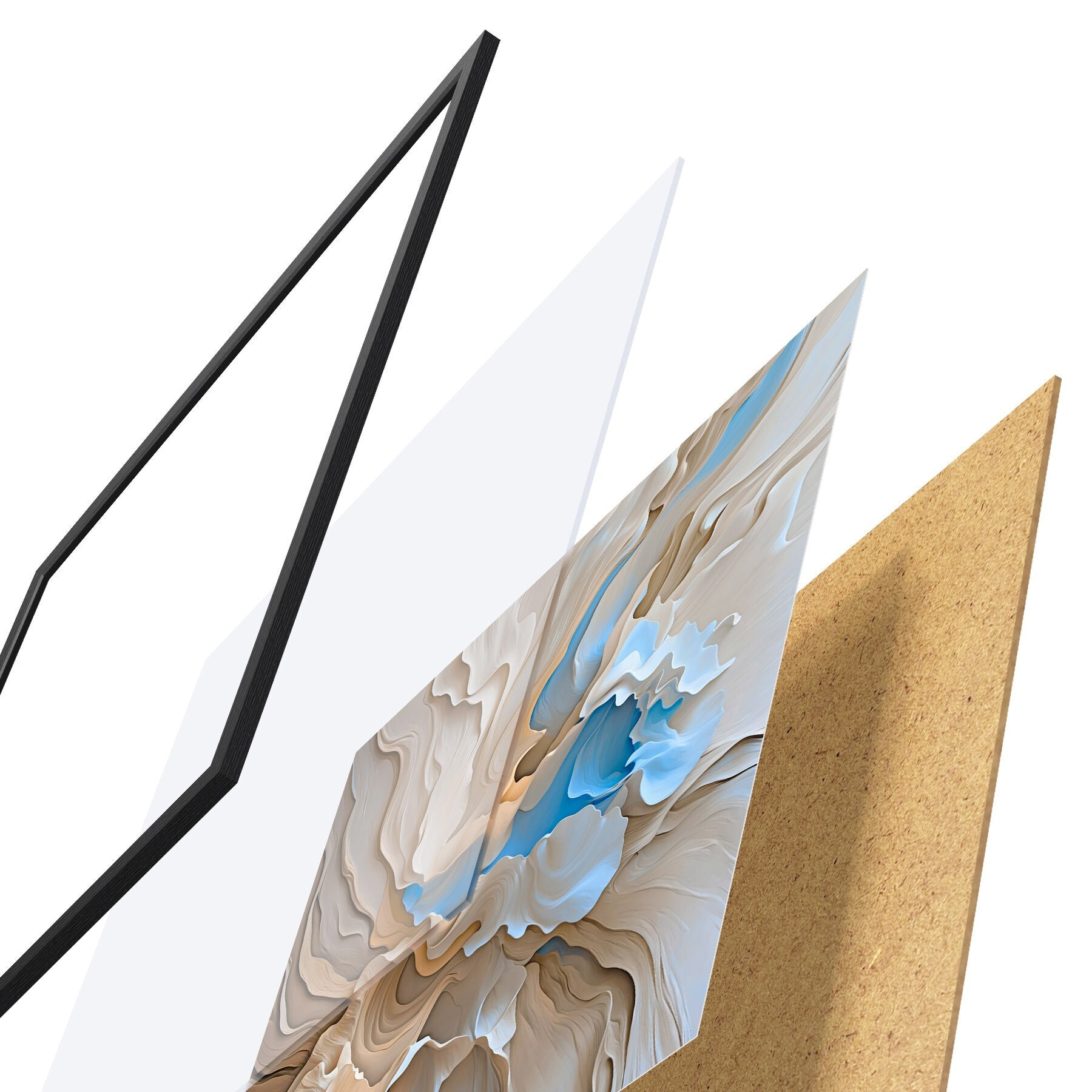 A poszter keretből, plexiből, nyomtatott képből és forgácslap hátlapból áll. A poszter a hátoldalon található rögzítőknek köszönhetően azonnal felakasztható a falra.